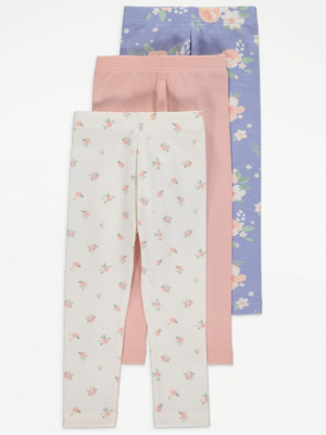 Floral Leggings 3 Pack Kids at ASDA